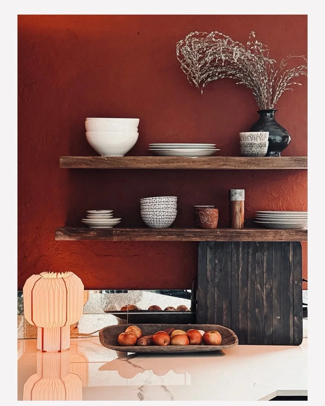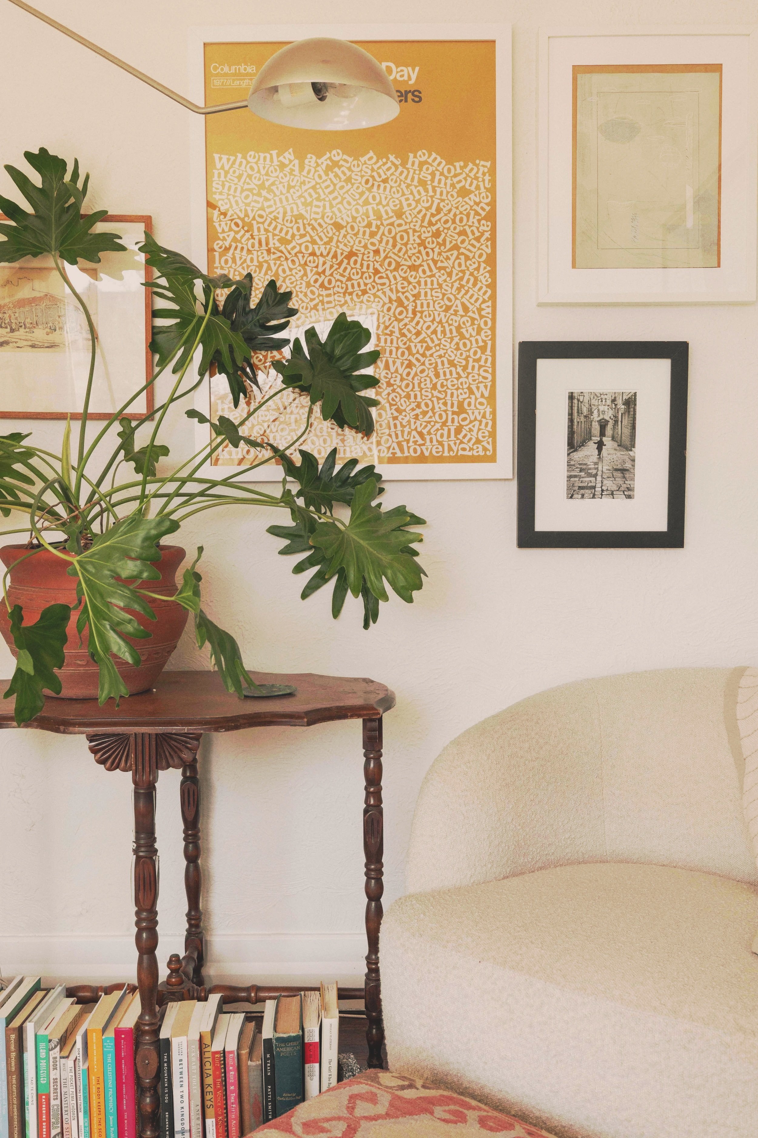 She uses a layered approach in her designs to make sure everything compliments each other in color, tone and texture. Our dining room and living room evolved around a painting we inherited, and the furniture centered around this piece.